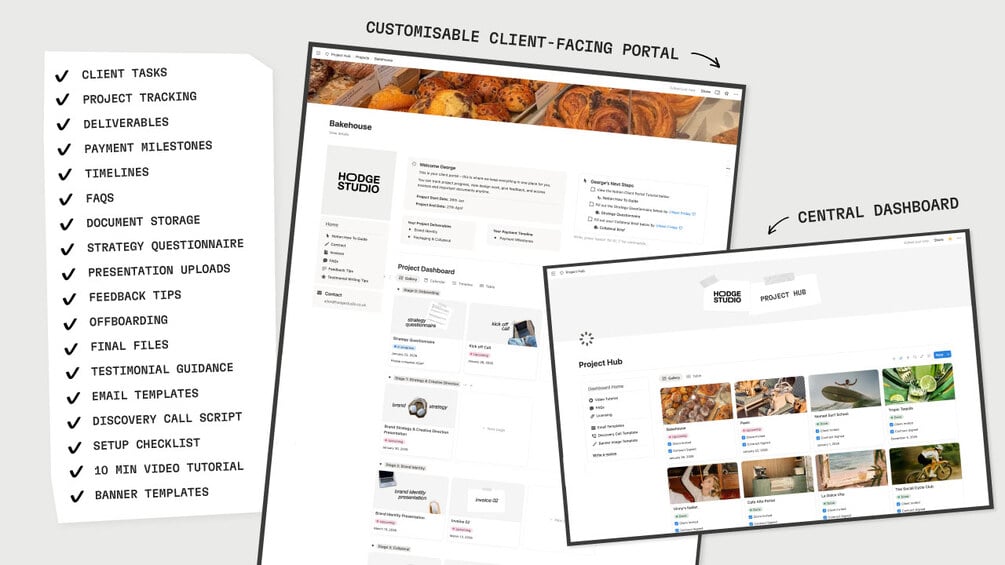 - Duplicate into your Notion account, follow the setup checklist, watch the walkthrough video tutorial, and customise it to your workflow and branding